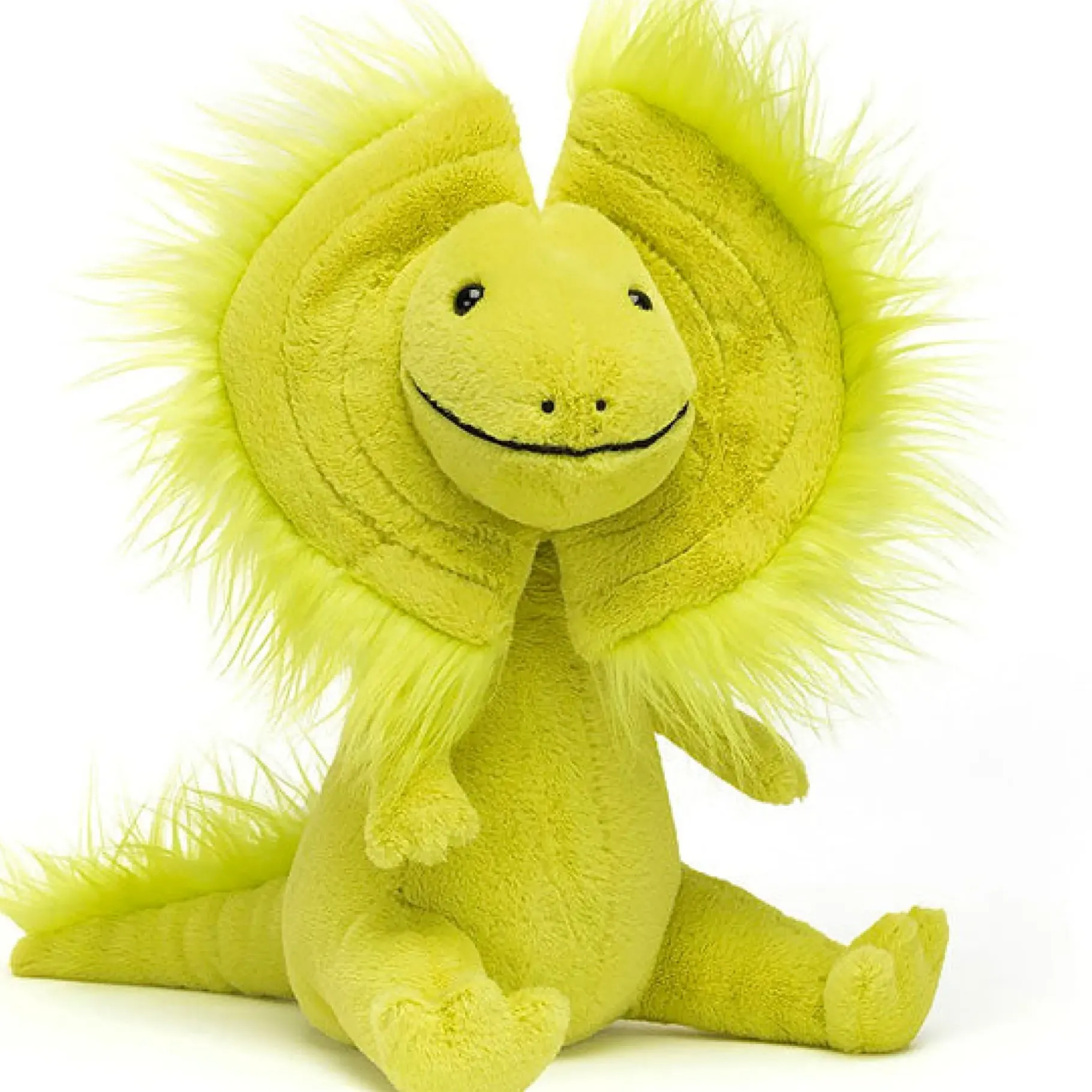 This Darling Dino Is Stunning With His Bright, Lime-Green Exterior And Stitched Fuzzy Frill Which Really Catches Your Eye! Davey’s Bright Little Face, Long Fluffy Tail, And Plump Feet Make Him The Best Prehistoric Pal You Could Ever Have. A Jellycat Davey Dilophosaurus That Won’T Go Extinct.